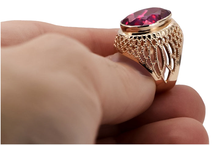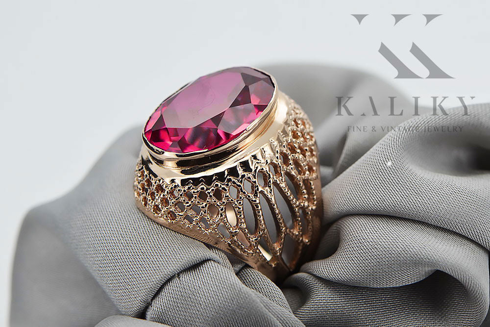 Silver 925 Rose Gold Plated Ruby Ring vrc089rp Vintage