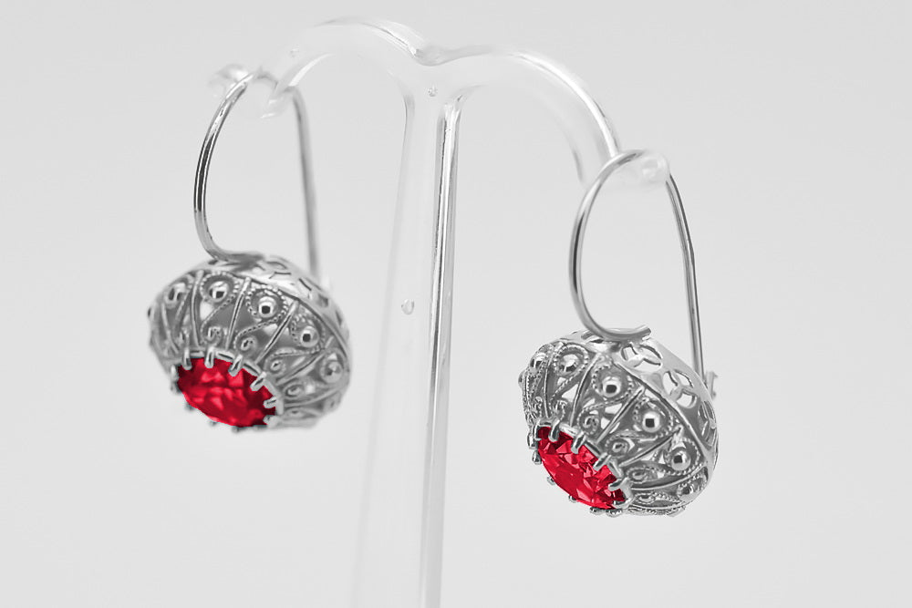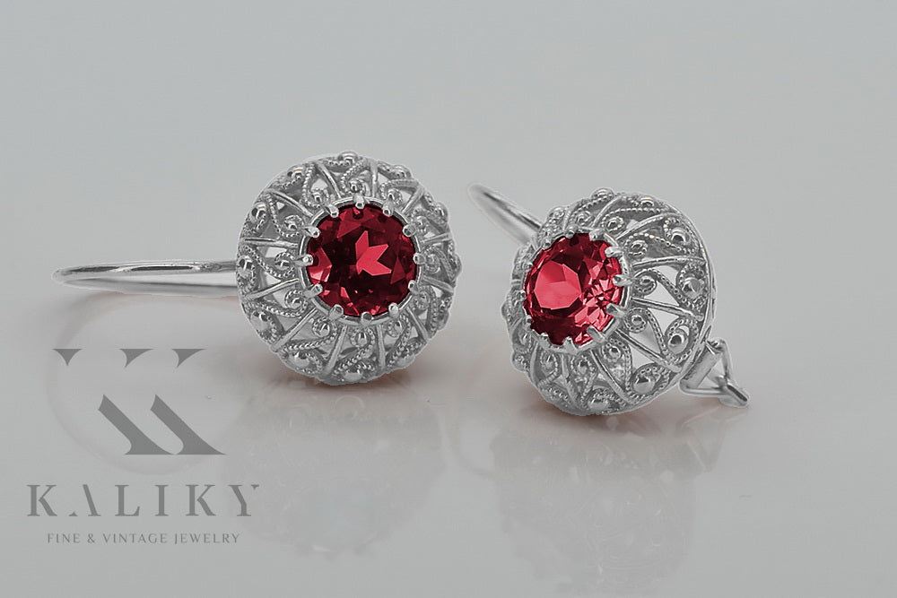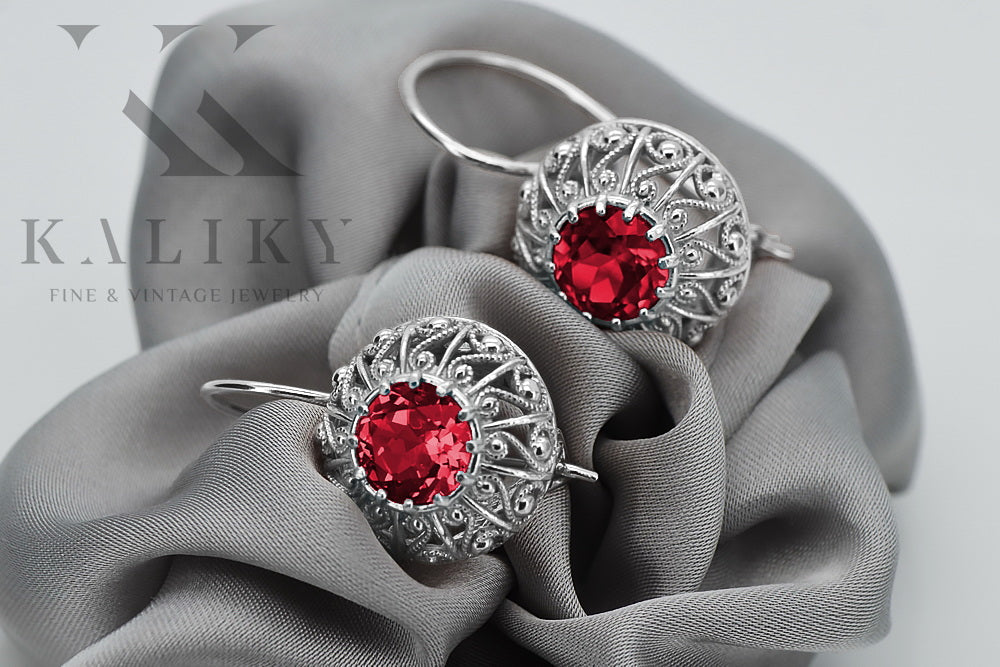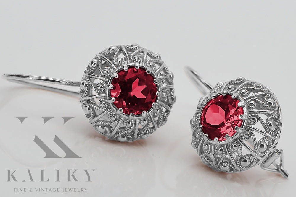 Silver 925 Ruby earrings vec002s Russian Soviet style vec002s-rb