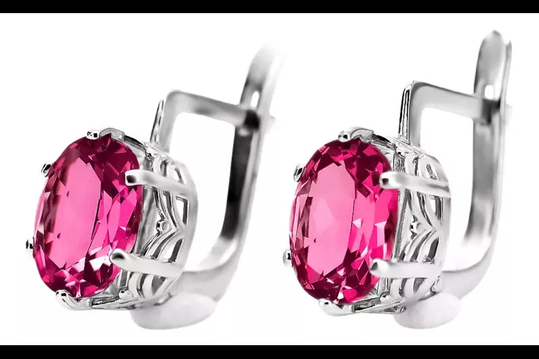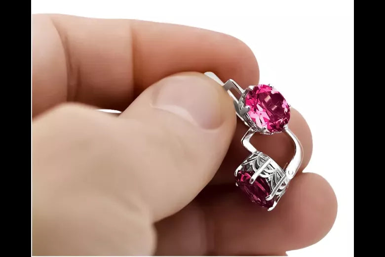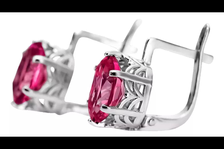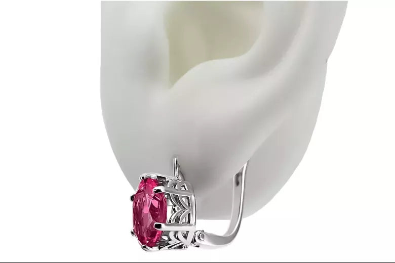 Silver 925 Russian style ruby earrings vec003s Vintage Russian Soviet style vec003s-rb