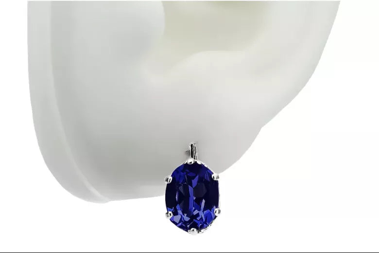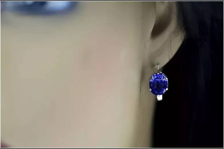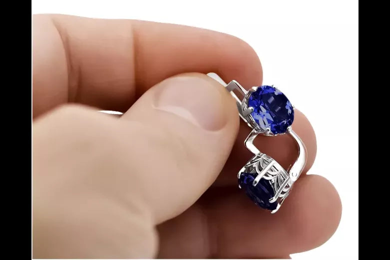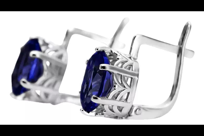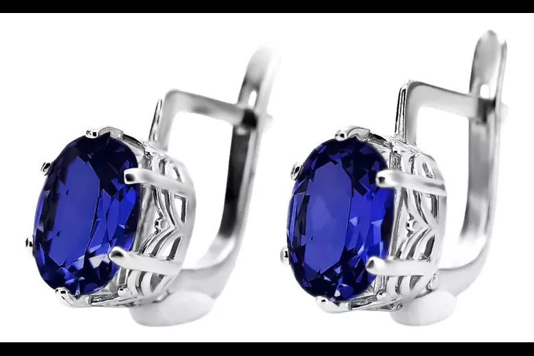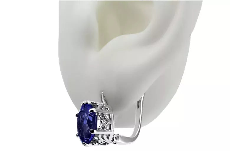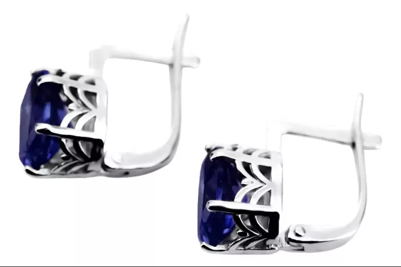 Silver 925 Russian style sapphire earrings vec003s Vintage Russian Soviet style vec003s-sp