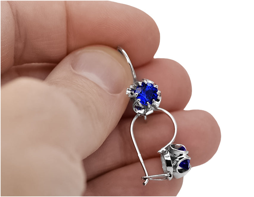 Silver 925 sapphire earrings vec035s Vintage Russian Soviet style vec035s-sp