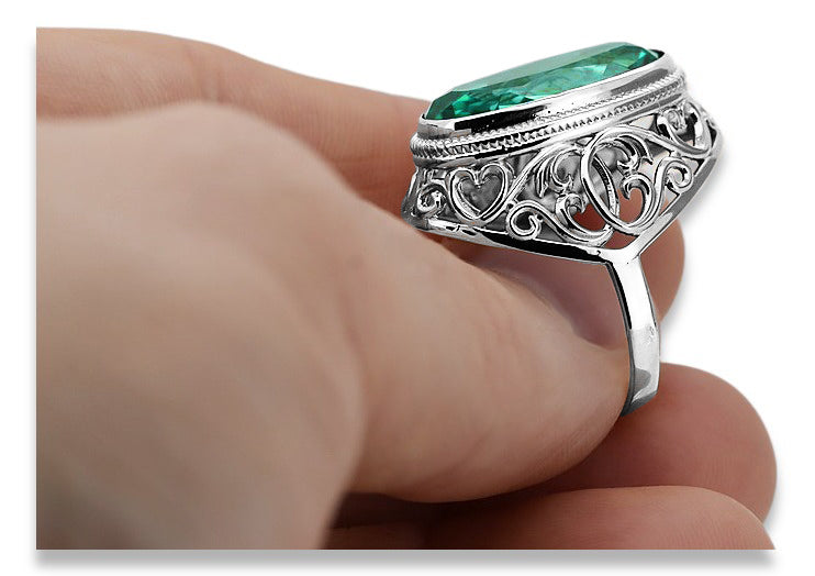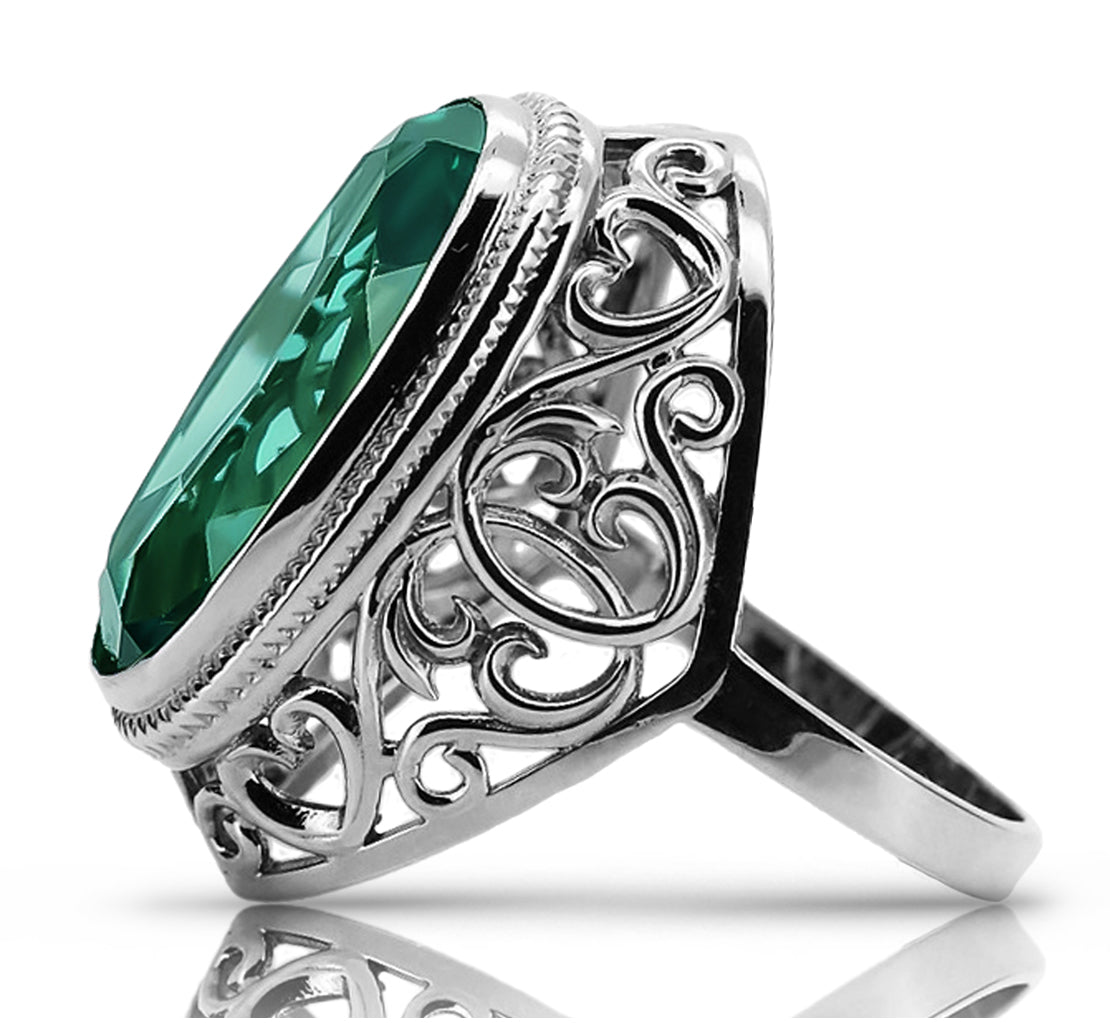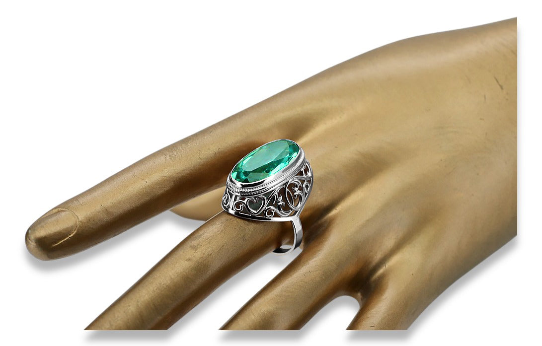 Silver 925 Soviet Russian style emerald ring vrc184s Vintage