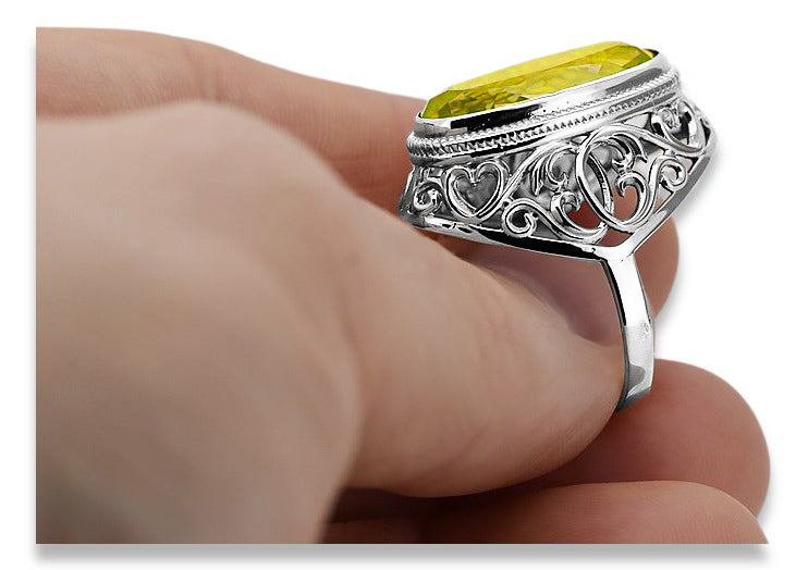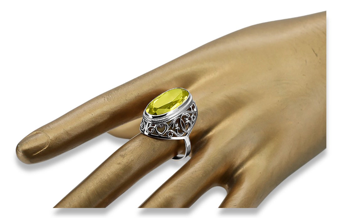 Silver 925 Soviet Russian style peridot ring vrc184s Vintage