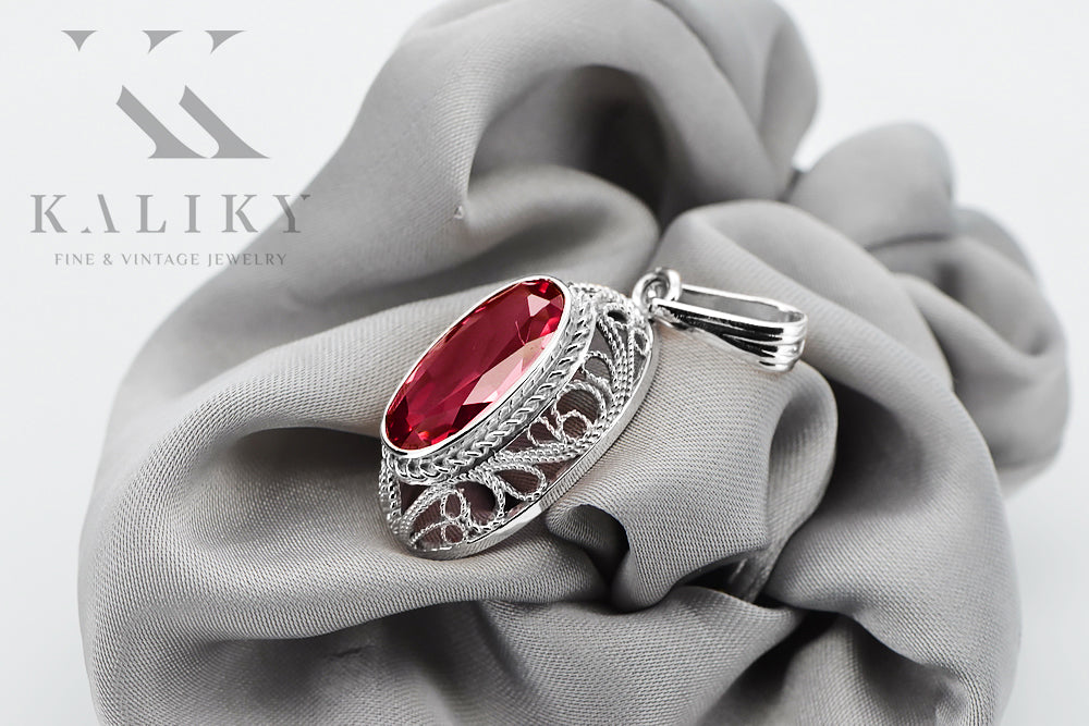 Soviet silver 925 pendant with ruby vpc014s Vintage vpc014s-rb
