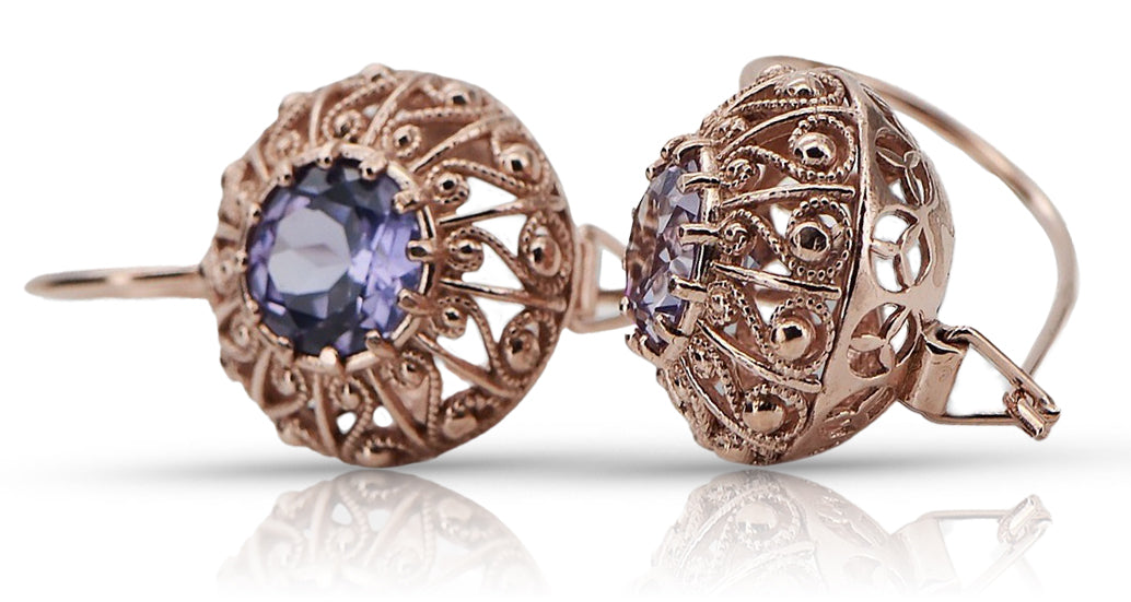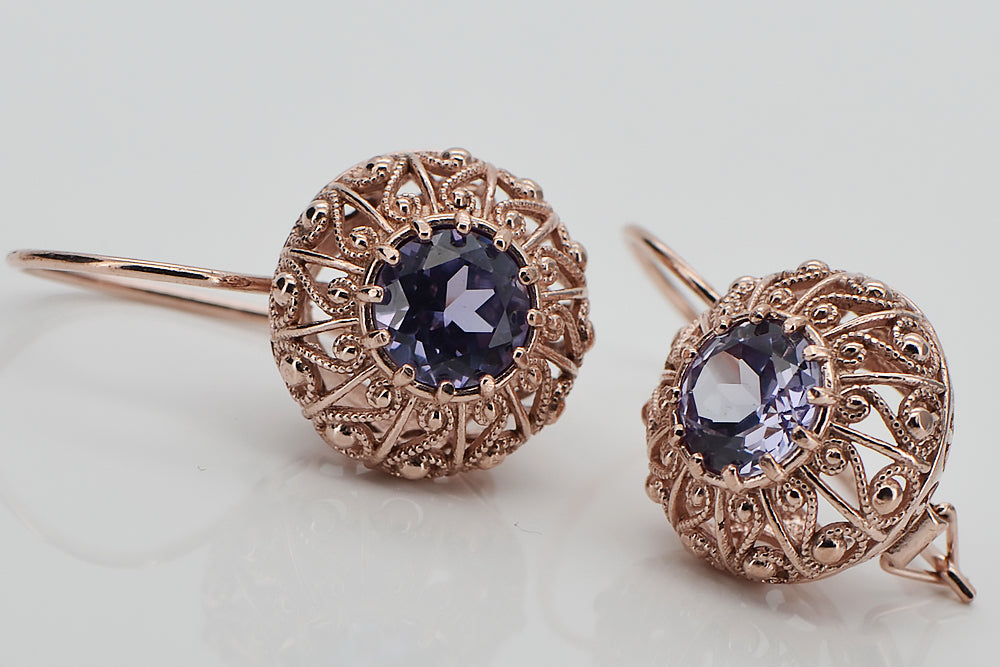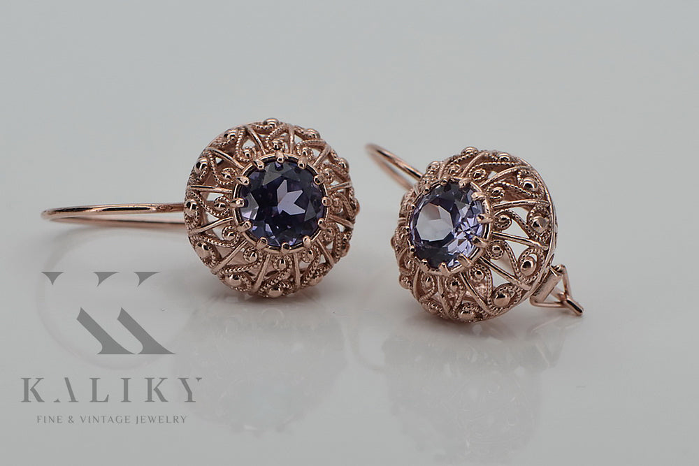 Vintage 14k Rose Gold Alexandrite Earrings 28mm
