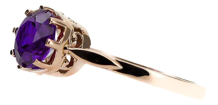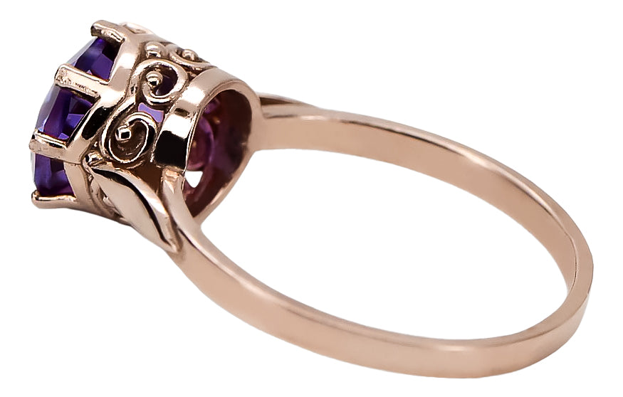 Vintage 14k Rose Gold Alexandrite Ring, 7.5mm Round
