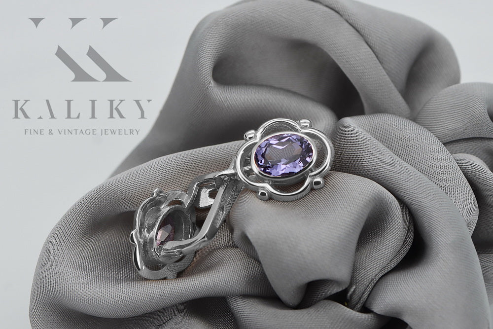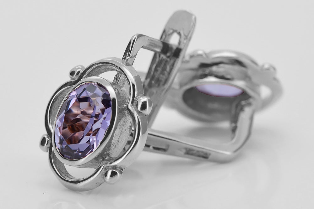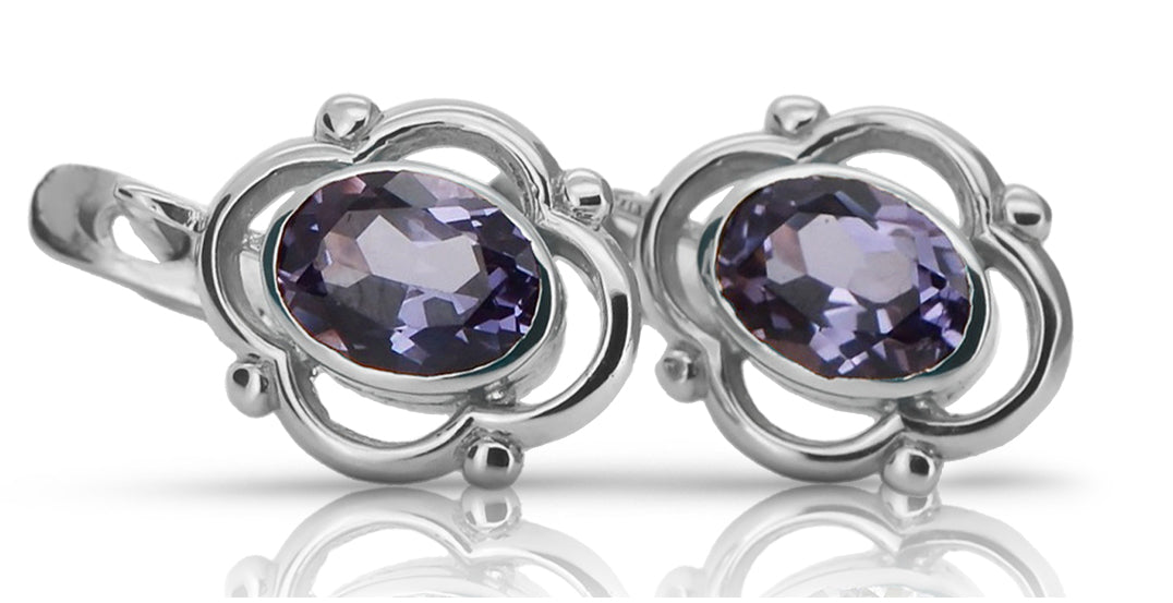 Vintage 925 Silver alexandrite earrings vec033s Russian Soviet style vec033s-ax