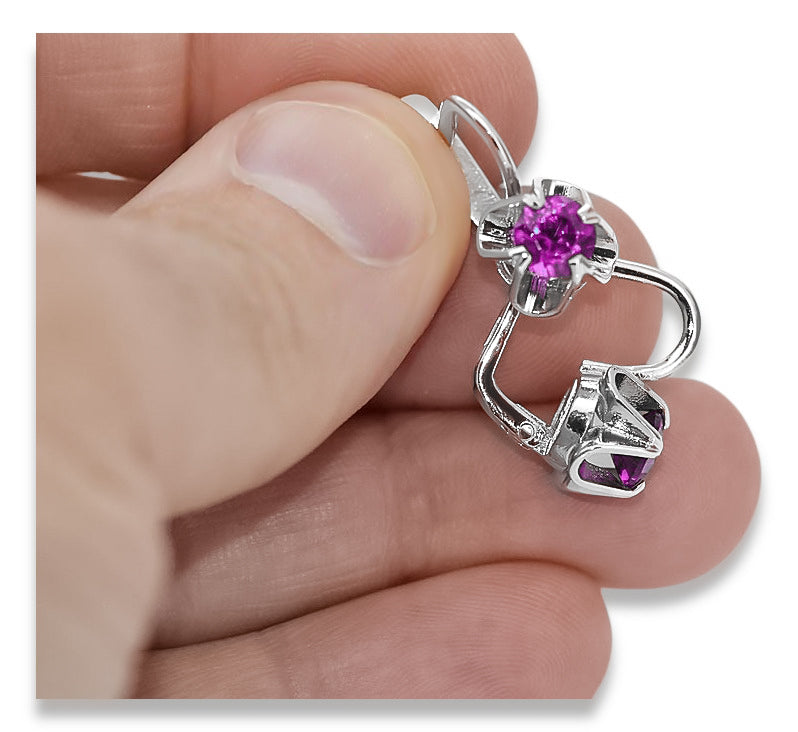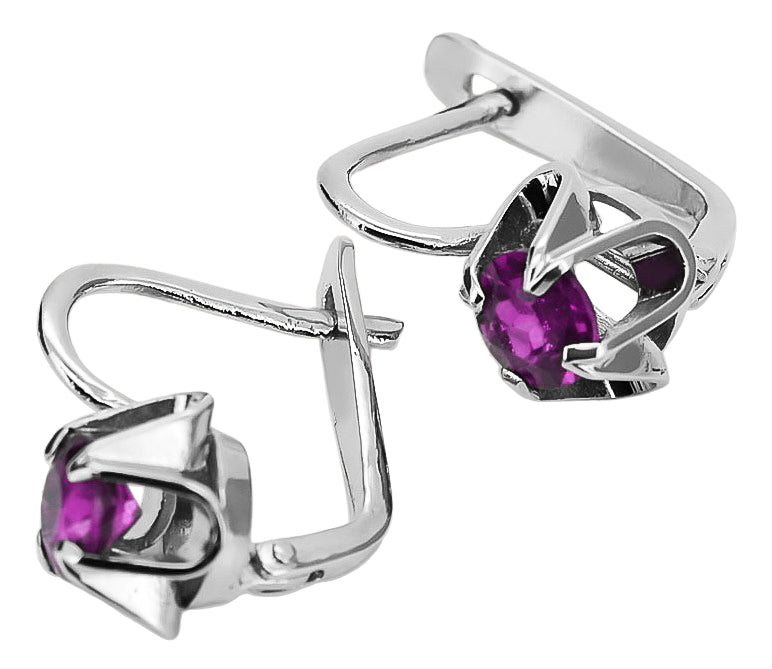 Vintage 925 Silver Amethyst earrings vec018s Russian Soviet style