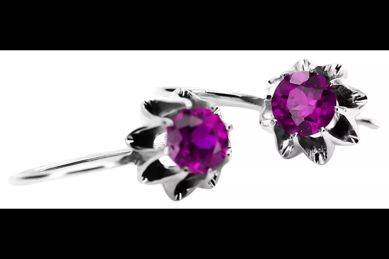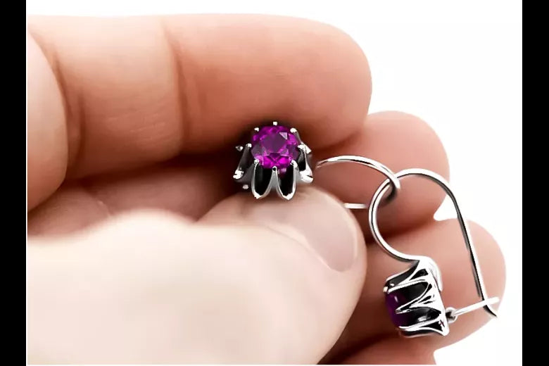 Vintage 925 Silver Amethyst earrings vec092s Russian Soviet style vec092s-am