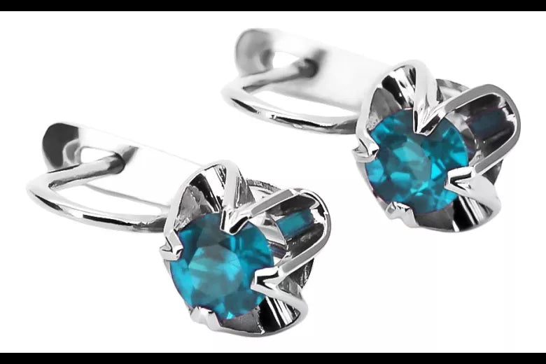 Vintage 925 Silver Aquamarine earrings vec018s Russian Soviet style