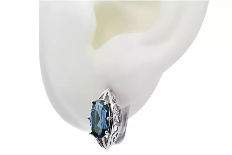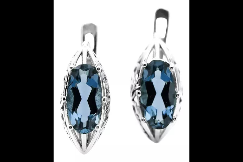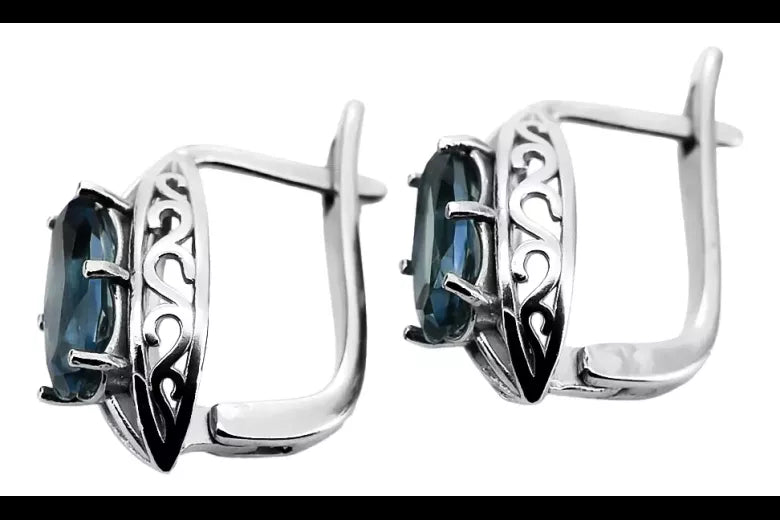Vintage 925 Silver aquamarine earrings vec141s Russian Soviet style vec141s-aq