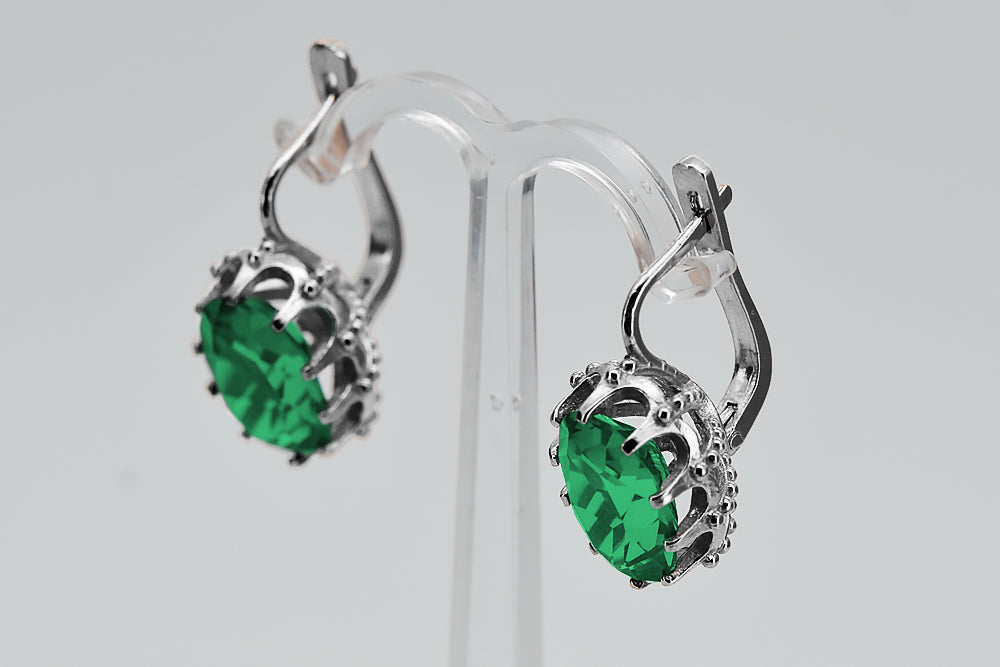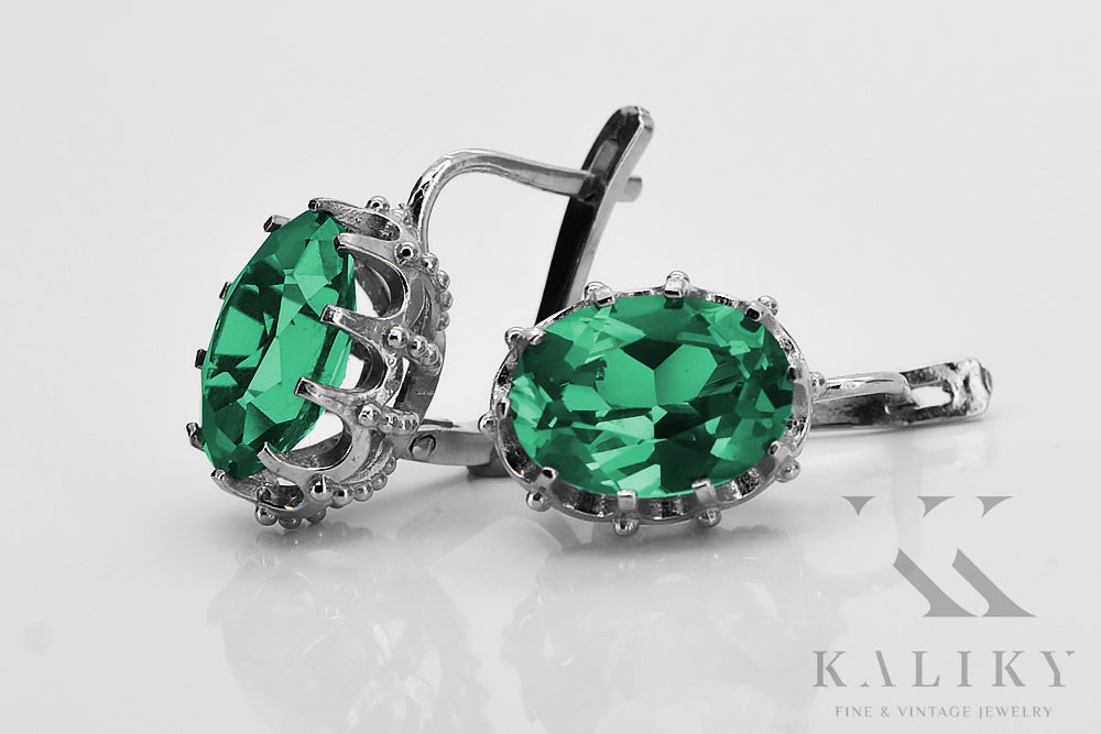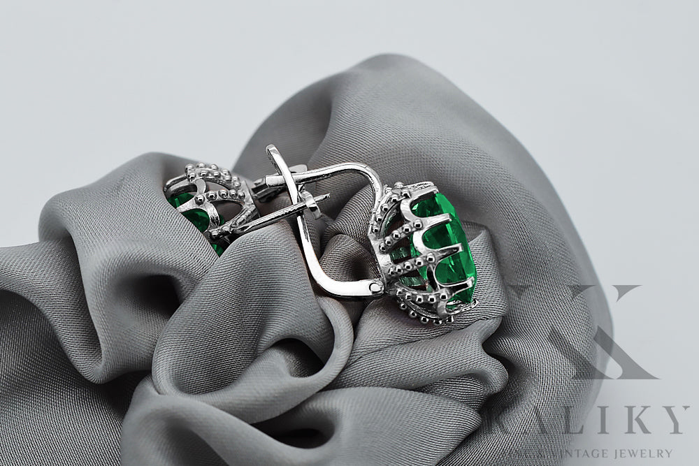 Vintage 925 Silver emerald earrings vec079s Vintage vec079s-em