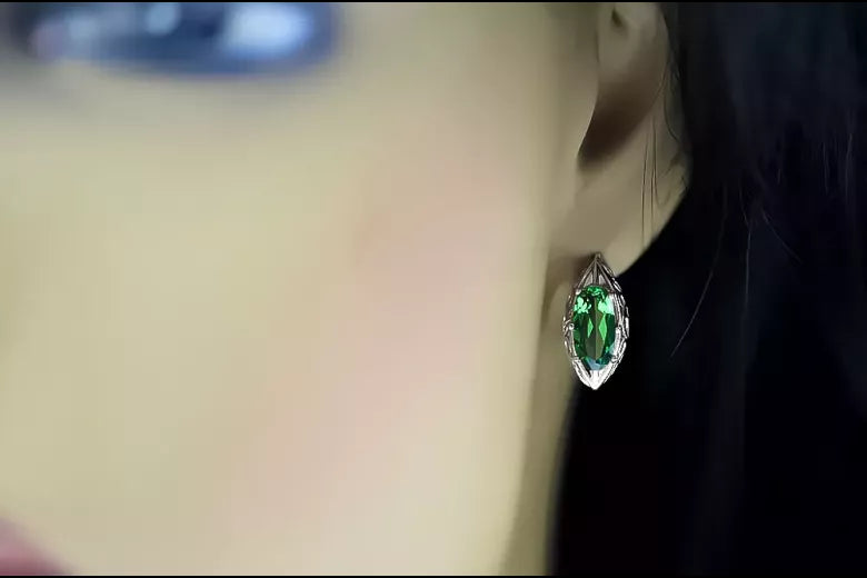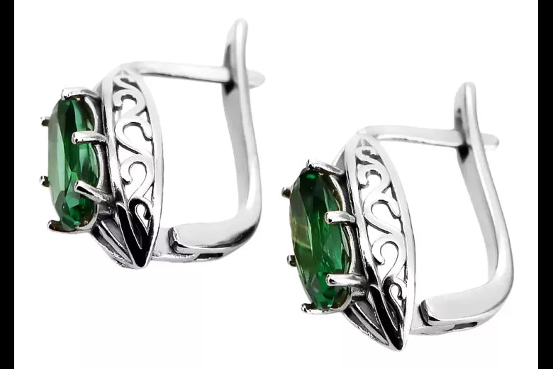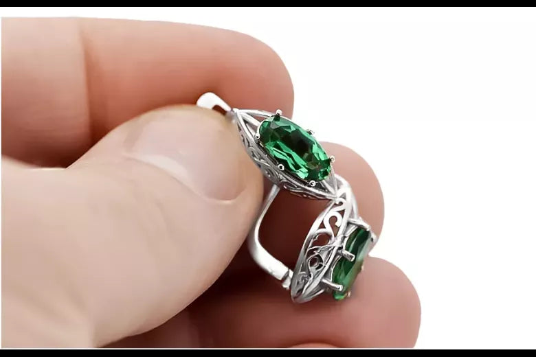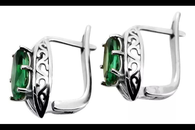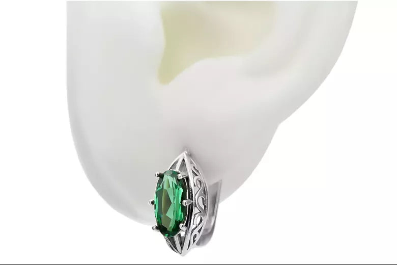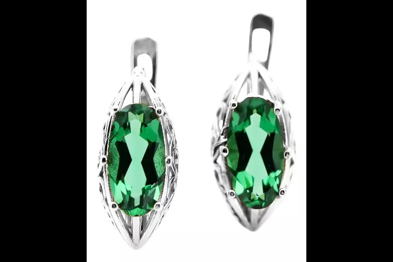 Vintage 925 Silver emerald earrings vec141s Russian Soviet style vec141s-em
