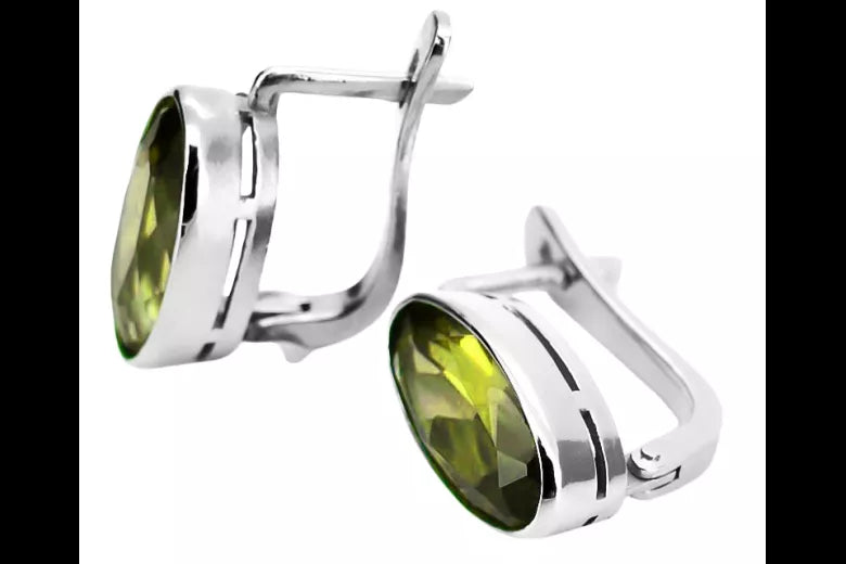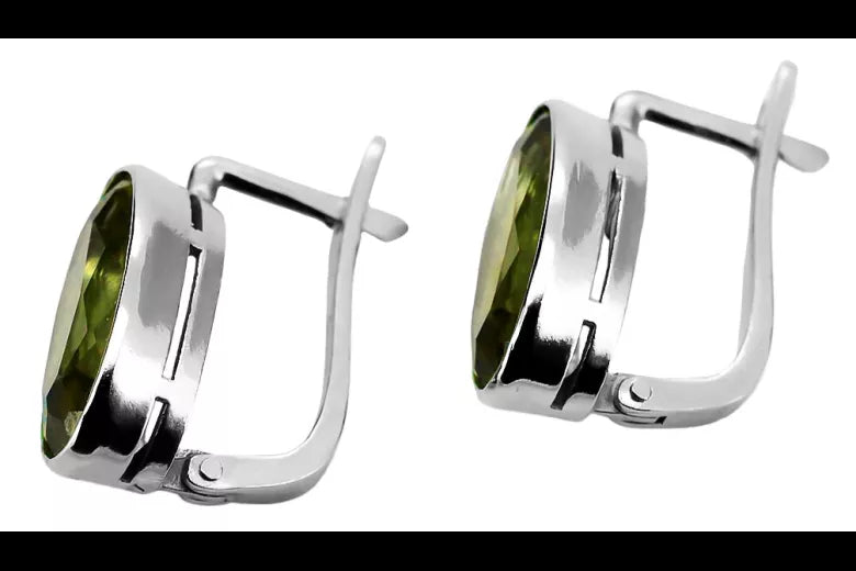 Vintage 925 Silver peridot earrings vec001s Russian Soviet style vec001s-yp