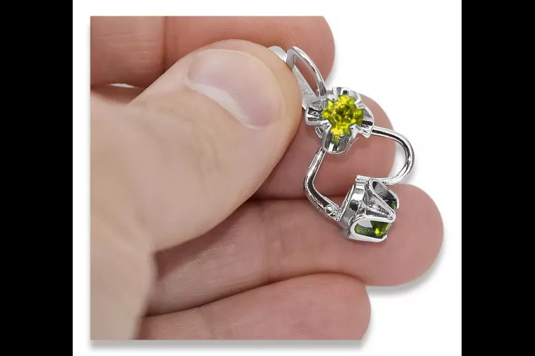 Vintage 925 Silver Peridot earrings vec018s Russian Soviet style