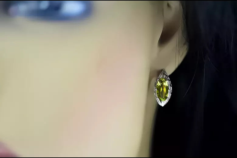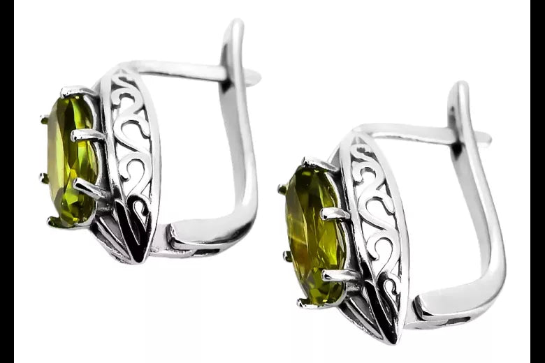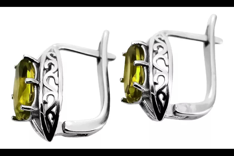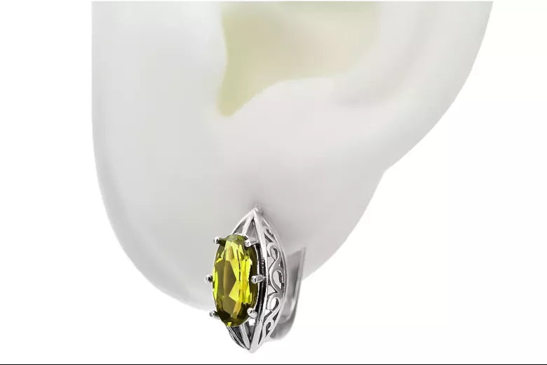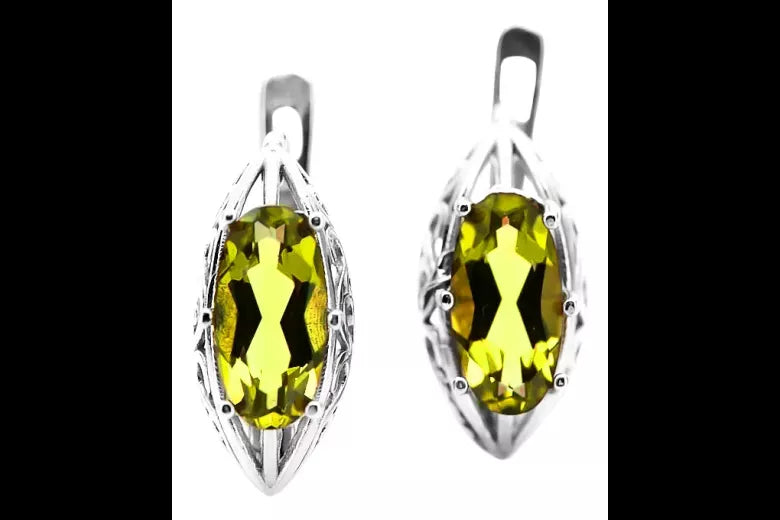 Vintage 925 Silver peridot earrings vec141s Russian Soviet style vec141s-yp