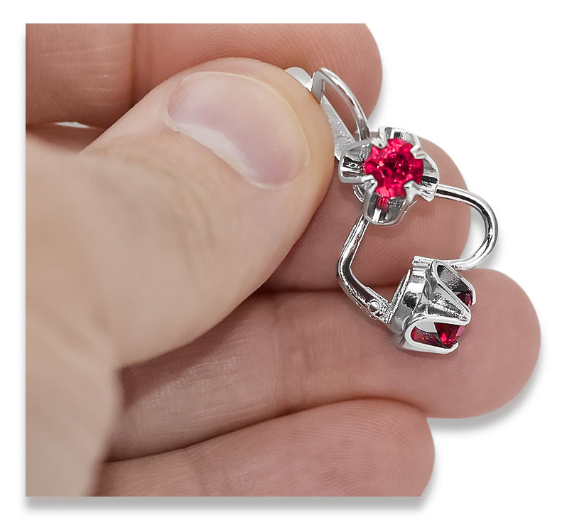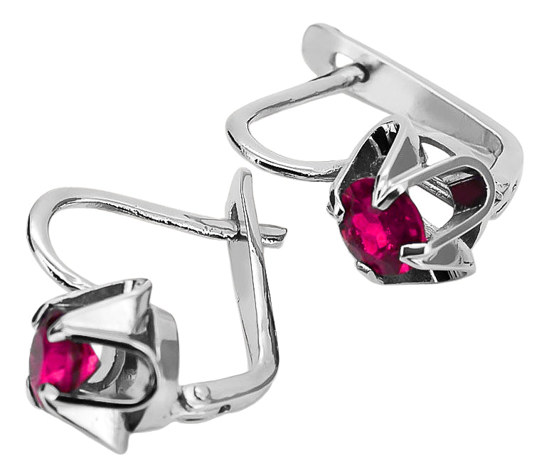 Vintage 925 Silver Ruby earrings vec018s Russian Soviet style vec018s-rb