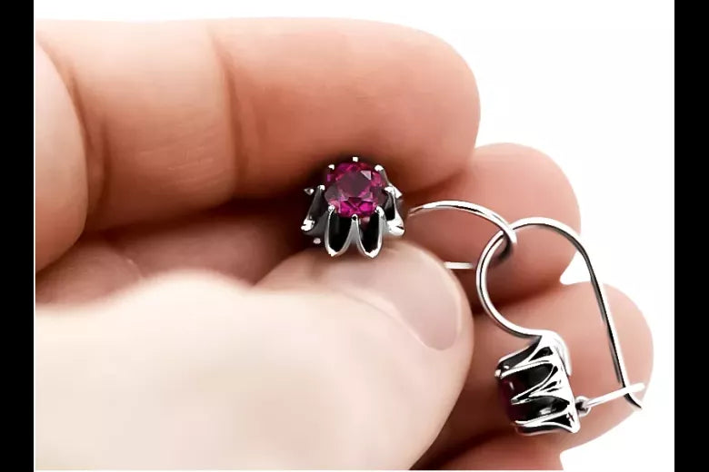 Vintage 925 Silver ruby earrings vec092s Russian Soviet style vec092s-rb