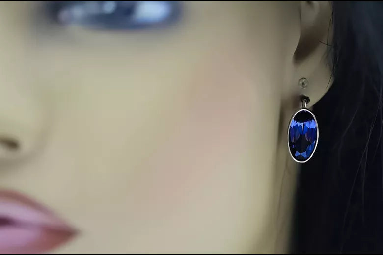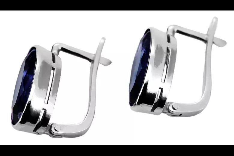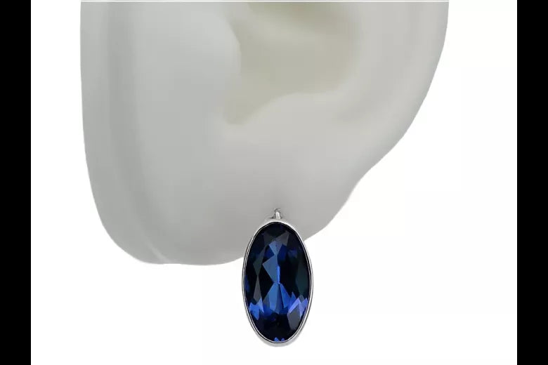 Vintage 925 Silver sapphire earrings vec001s Russian Soviet style vec001s-sp