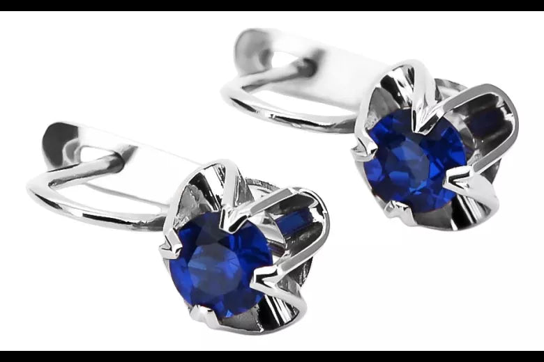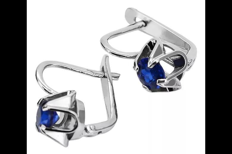 Vintage 925 Silver Sapphire earrings vec018s Russian Soviet style