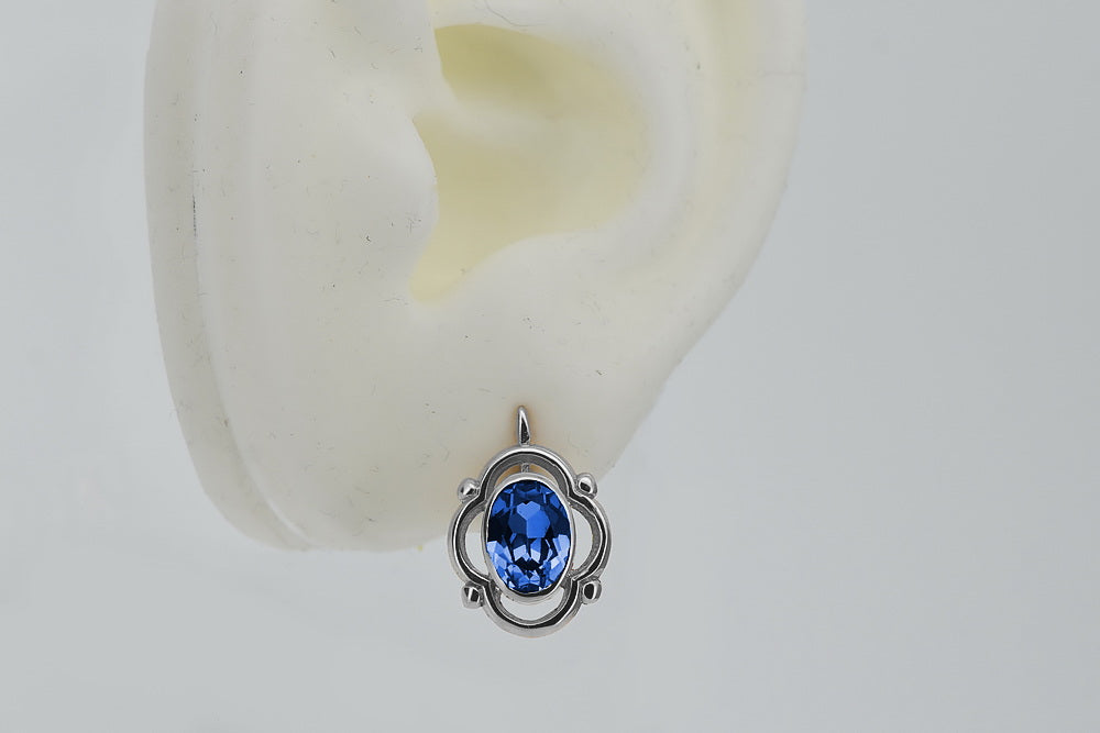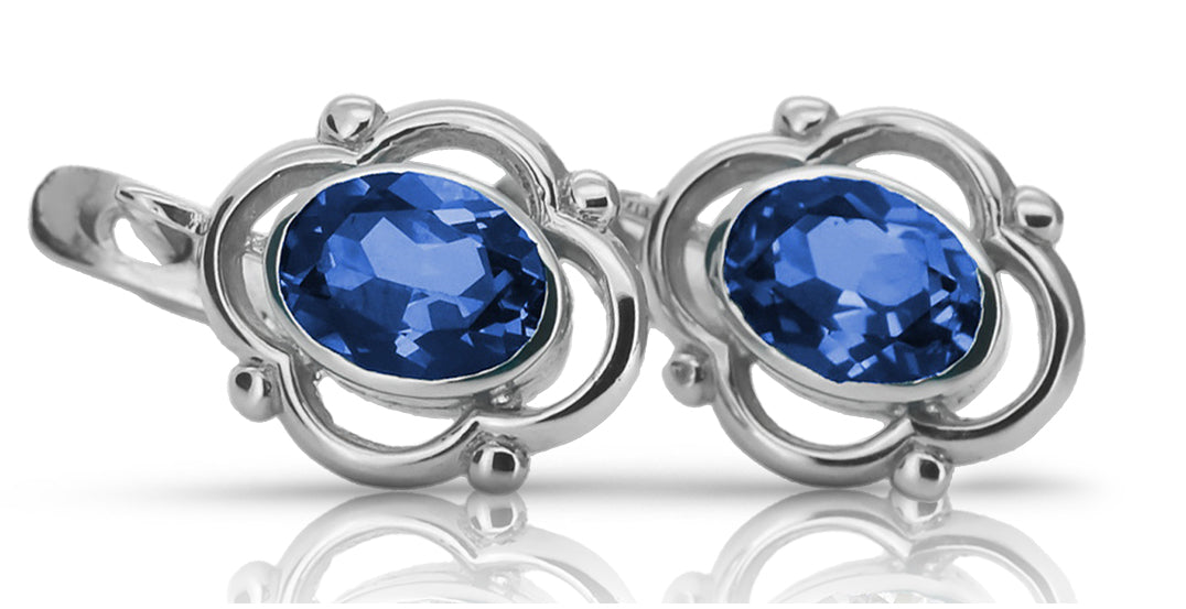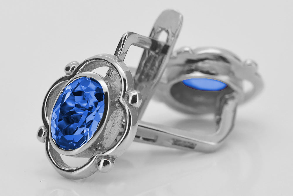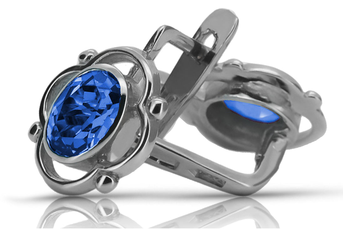 Vintage 925 Silver sapphire earrings vec033s Russian Soviet style vec033s-sp