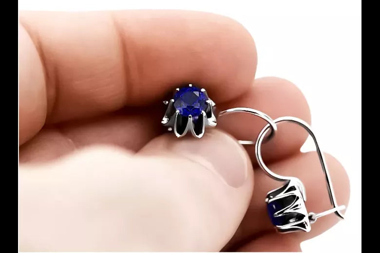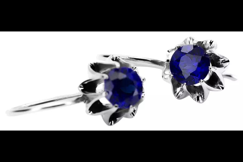 Vintage 925 Silver sapphire earrings vec092s Russian Soviet style vec092s-sp