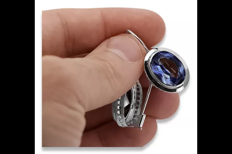 Vintage 925 Silver Sapphire earrings vec114s vec114s-sp