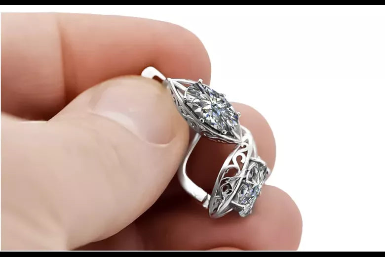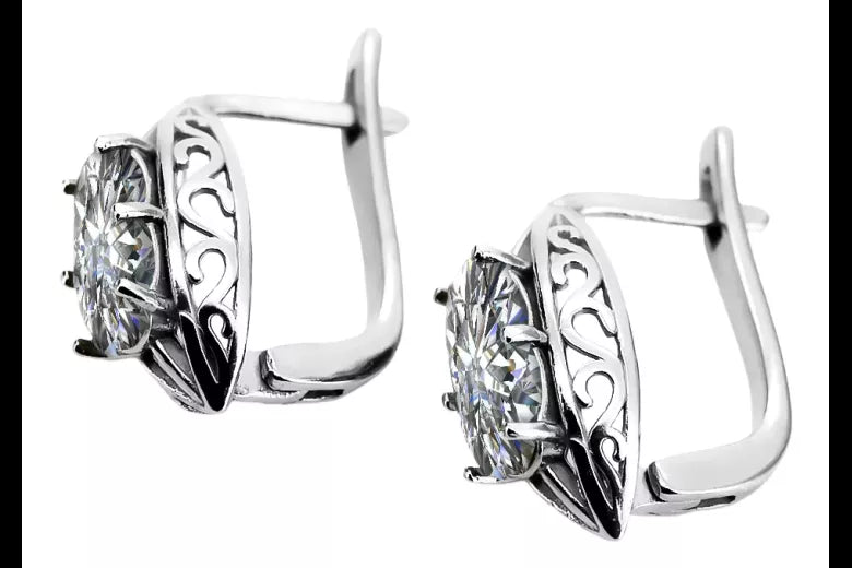 Vintage 925 Silver zircon earrings vec141s Russian Soviet style vec141s-zi