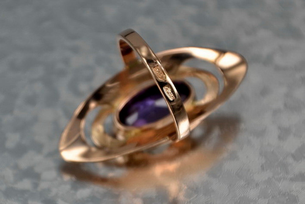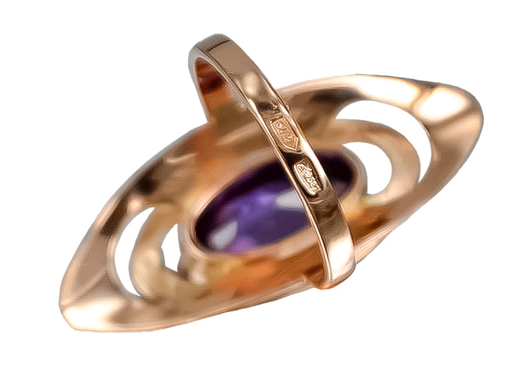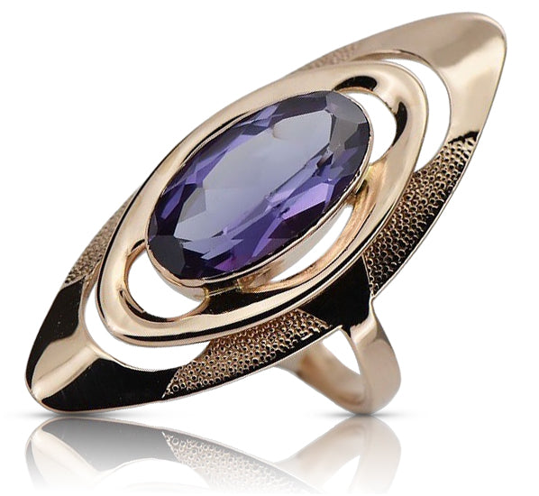 Vintage Alexandrite Oval Ring 14k Rose Gold Silver 925
