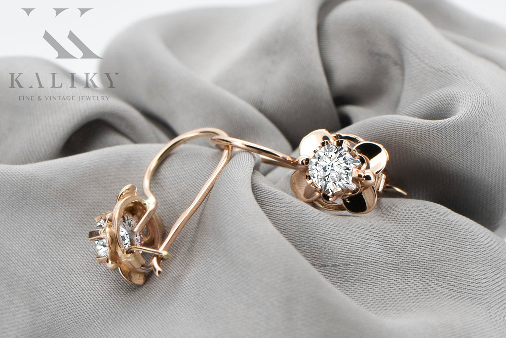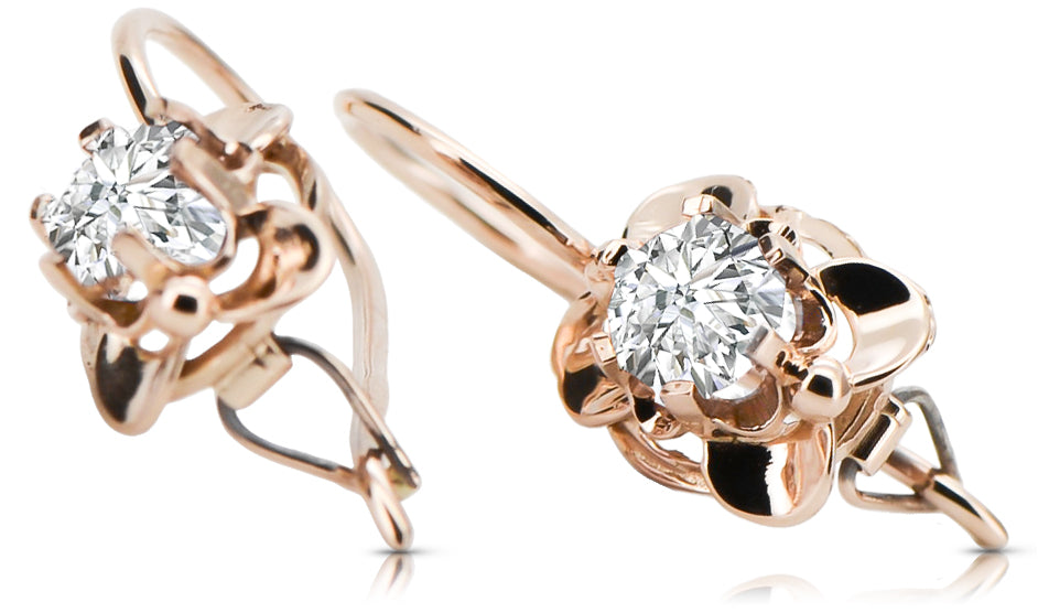 Vintage craft Earrings Zircon Original Vintage 14K Rose Gold vec116r