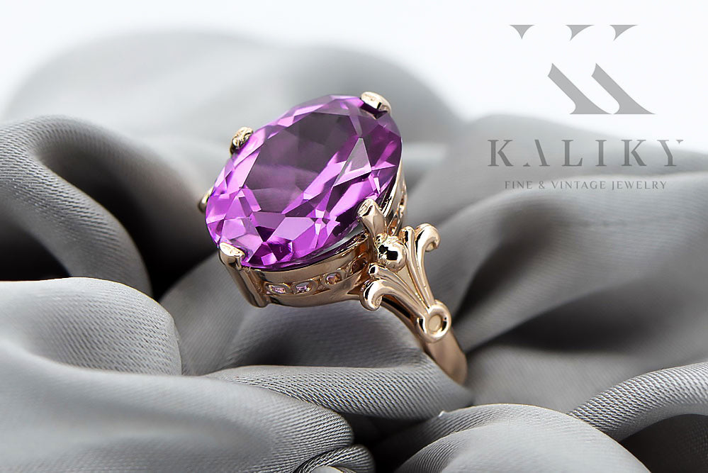 Vintage craft Ring Amethyst Original Vintage 14K Rose Gold vrc369r