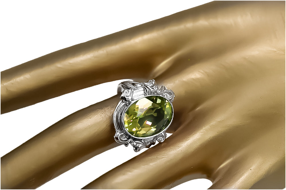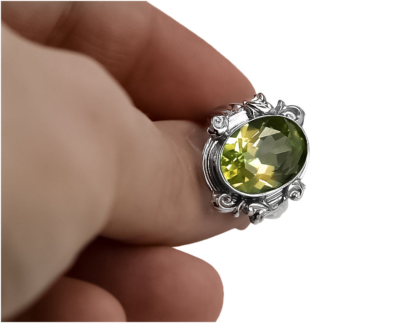 Vintage craft Ring Yellow Peridot Sterling silver 925 vrc100s
