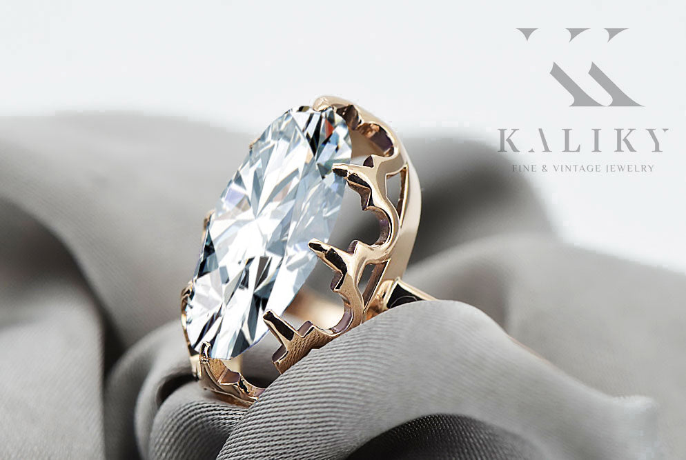 Vintage craft Ring Zircon Original Vintage 14K Rose Gold vrc253r