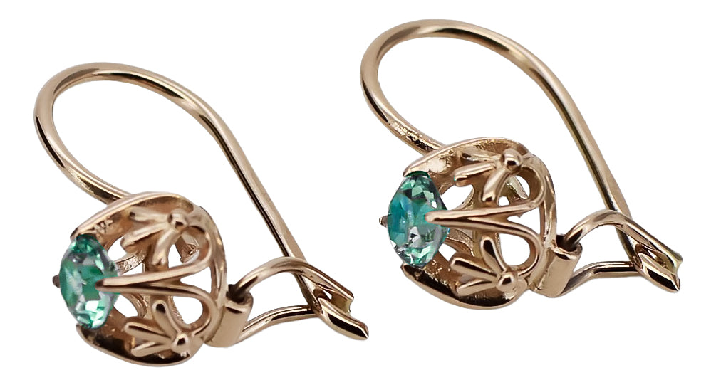 Vintage earrings made of 14k 585 rose gold with Emerald vec145