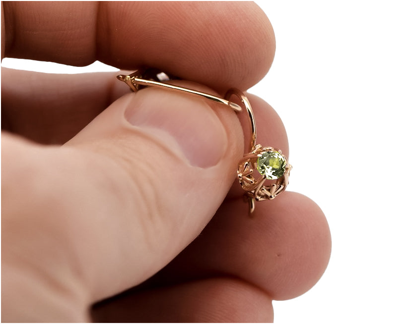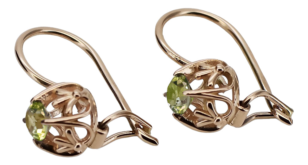 Vintage earrings made of 14k 585 rose gold with Yellow Peridot vec145