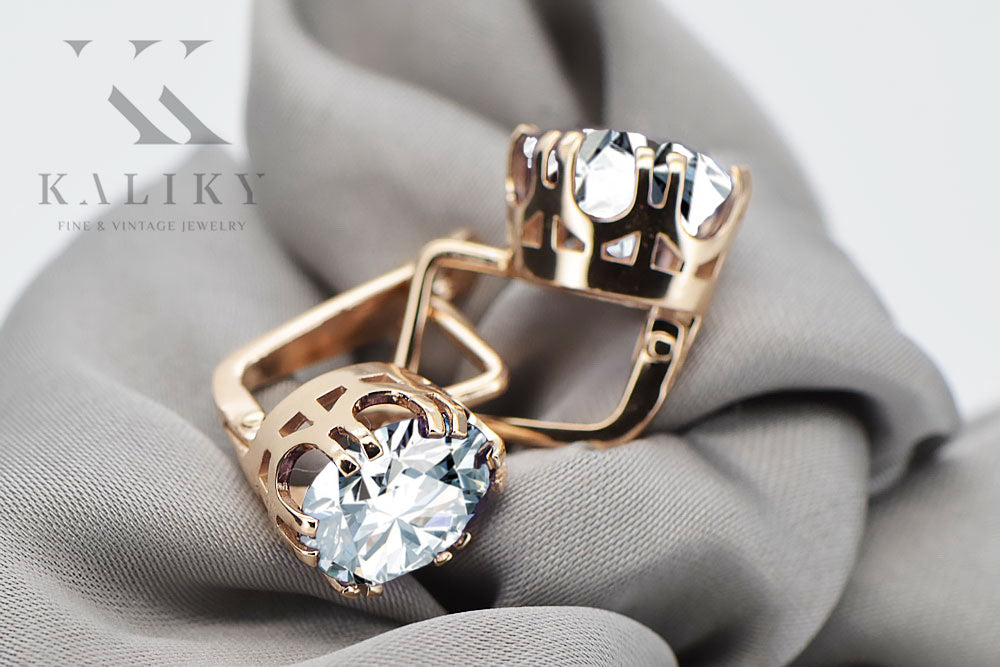 Vintage Jewlery Earrings Zircon Original Vintage 14K Rose Gold vec016r