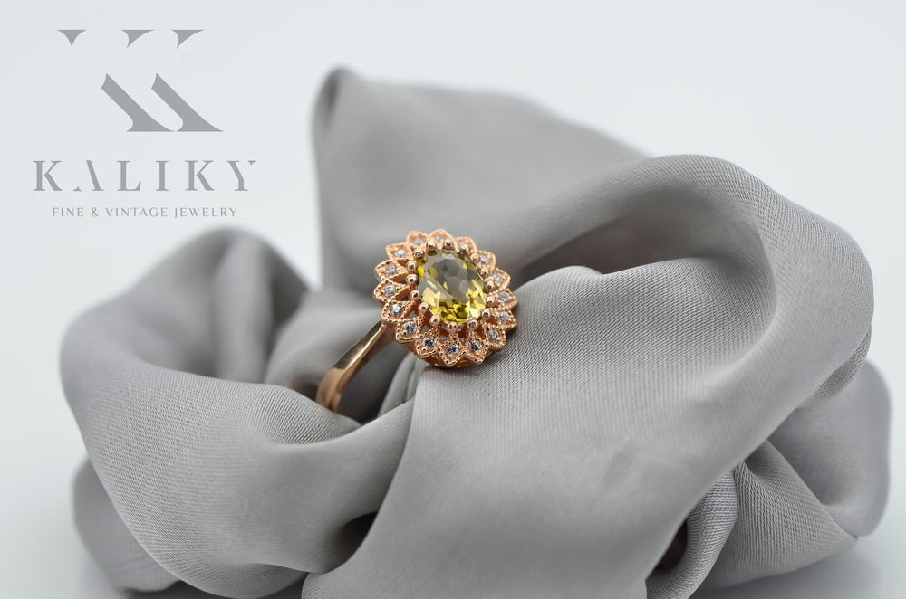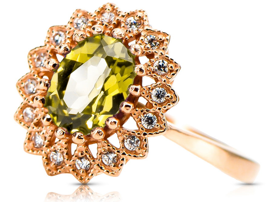 Vintage Jewlery Ring Yellow Peridot Original Vintage 14K Rose Gold crc012r