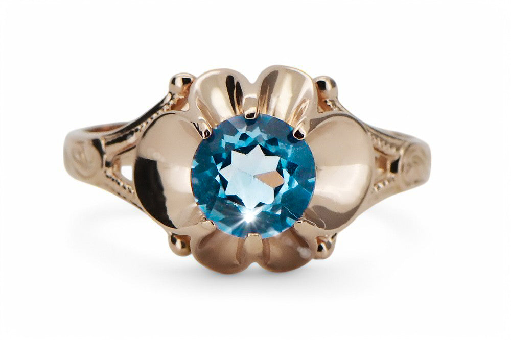 Vintage Ring Aquamarine Original Vintage 14K Rose Gold vrc377r