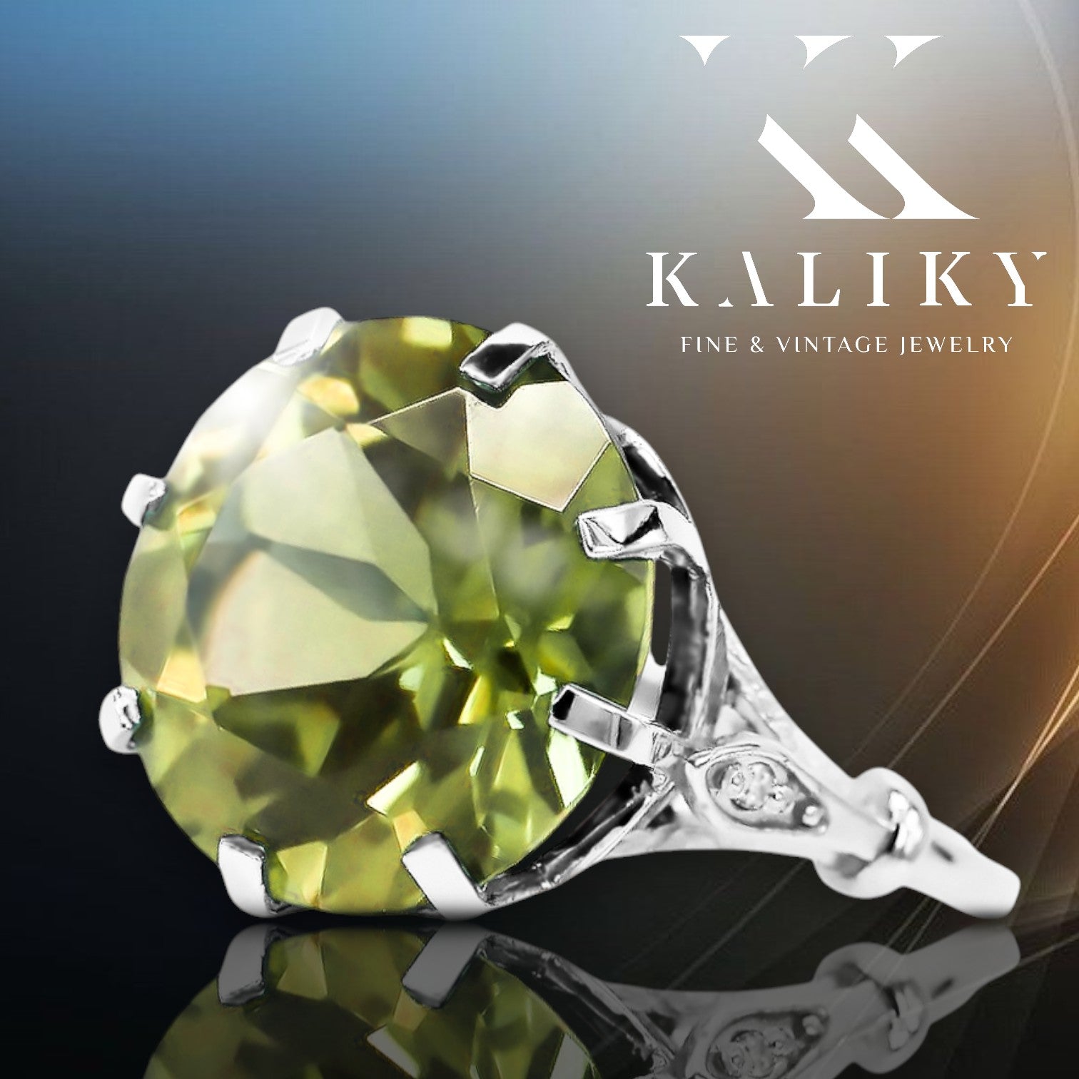 Vintage Ring Yellow Peridot Sterling silver 925 vrc073s