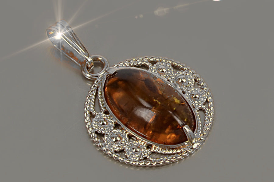 This pendant is more than just a piece of jewelry; it's a tangible connection to a rich cultural history. Its warm, rosy hue and the captivating amber gemstone evoke a sense of timeless beauty and refined luxury. A treasured heirloom to be cherished for generations. 💎