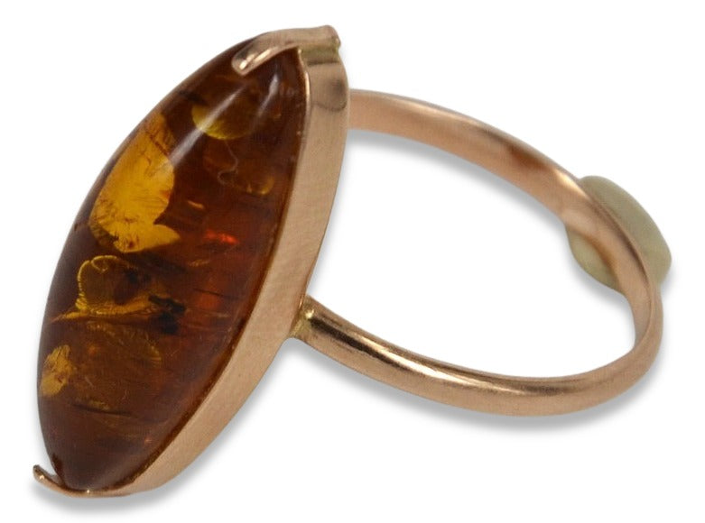 Vintage rose 14k 585 gold amber ring vrab002