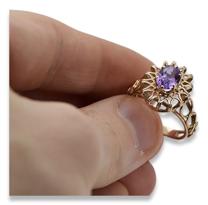 Vintage Rose Gold Ring 14K Alexandrite Ruby Emerald Sapphire Zircon 585 vrc032 vrc032r-ax