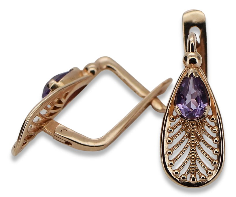 Vintage rose pink 14k 585 gold alexandrite earrings vec067 Vintage