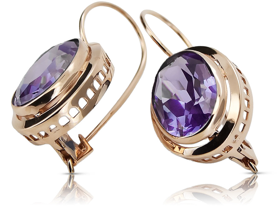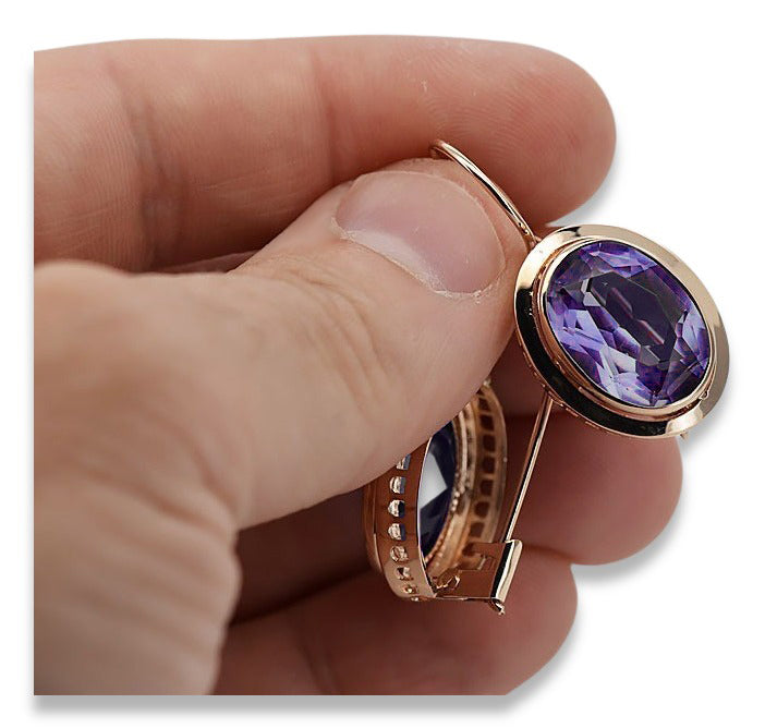 Vintage rose pink 14k 585 gold Alexandrite earrings vec114 vec114r-ax