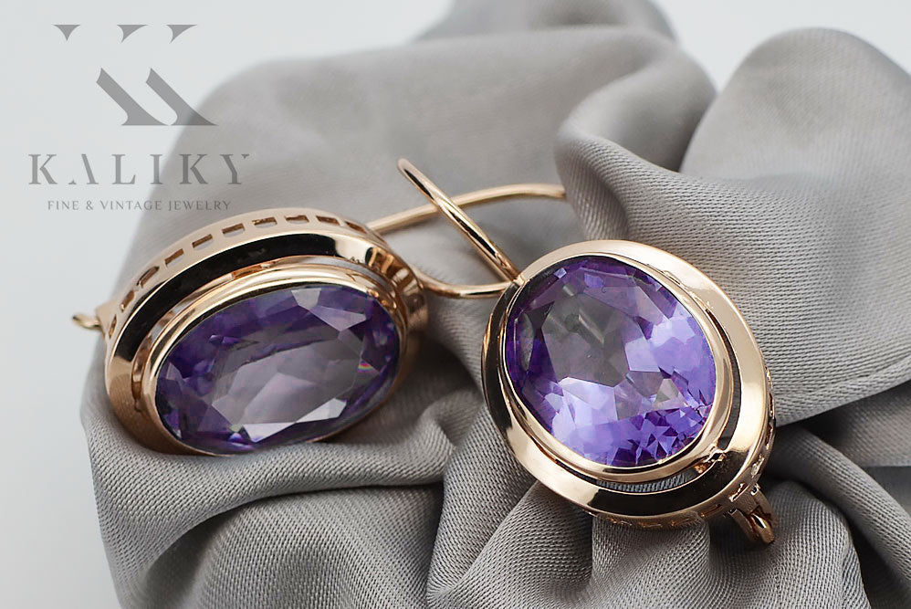 Capture the allure of a bygone era with these exquisite vintage rose pink 14k 585 gold Alexandrite earrings. A testament to Soviet craftsmanship, these earrings embody timeless elegance and sophisticated charm. Adorn yourself with a piece of history, a symbol of enduring beauty and refined taste.