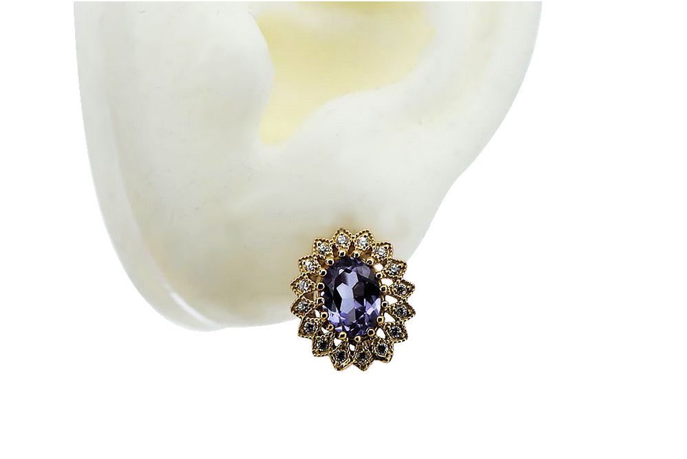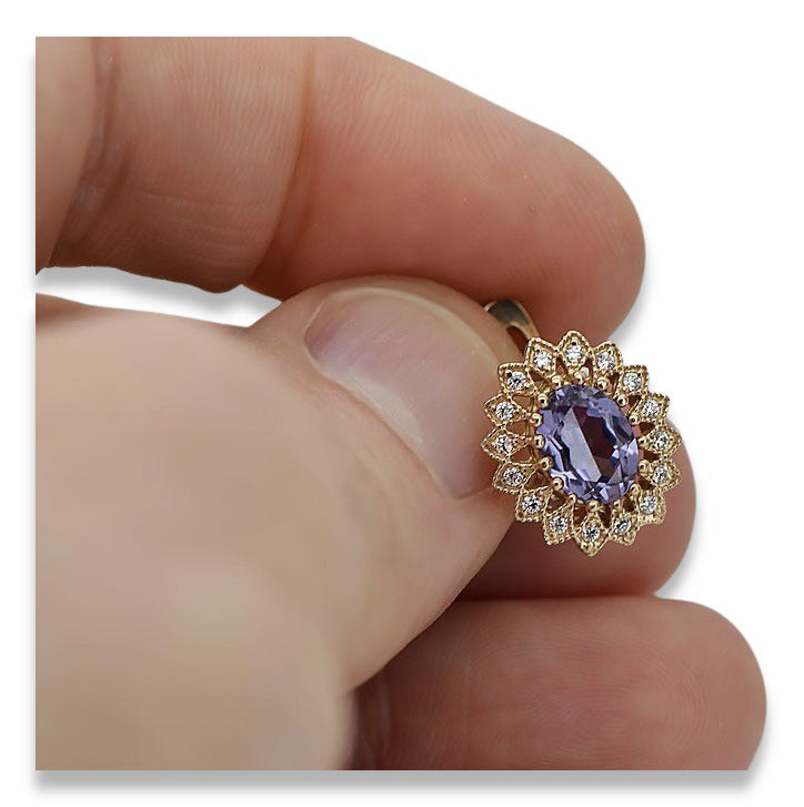 Vintage rose pink 14k 585 gold alexandrite earrings vec125 Vintage