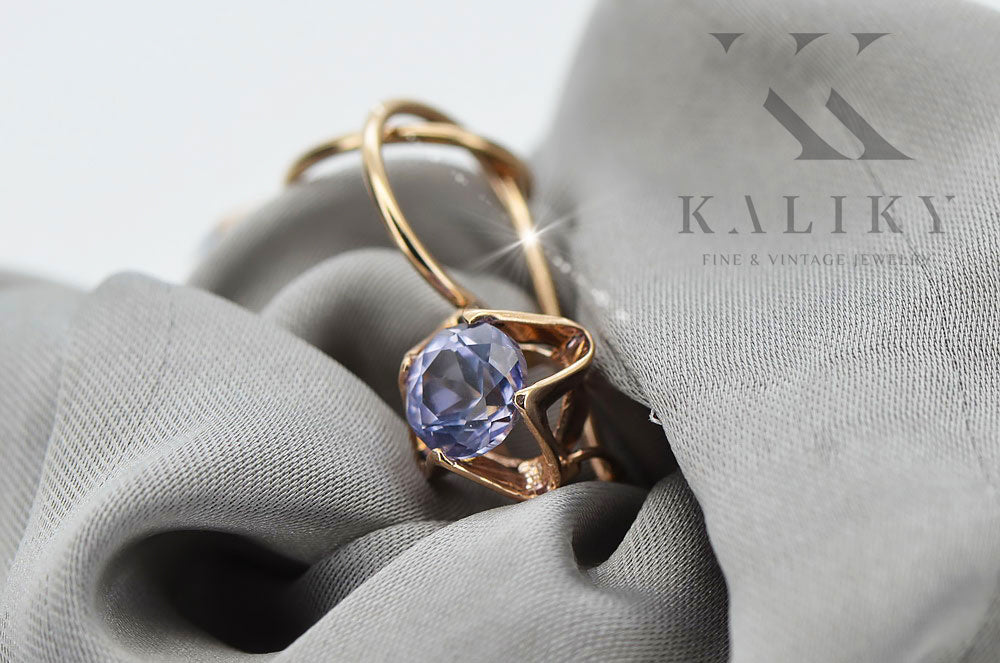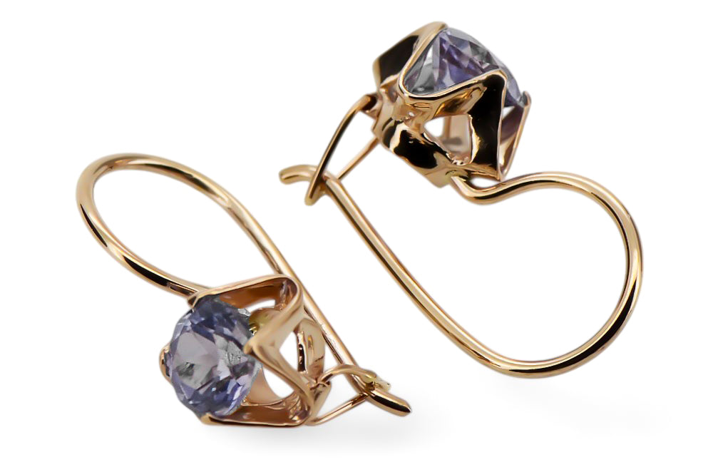 Vintage rose pink 14k 585 gold alexandrite earrings vec142 Vintage Russian Soviet Style