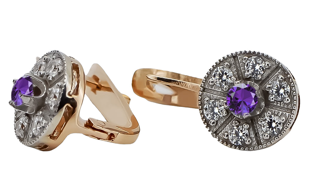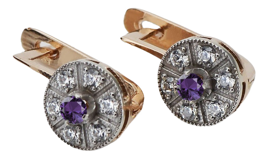 Vintage rose pink 14k 585 gold alexandrite earrings vec161rw Vintage
