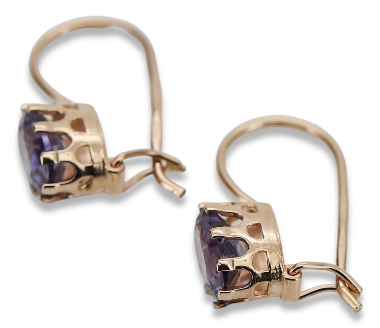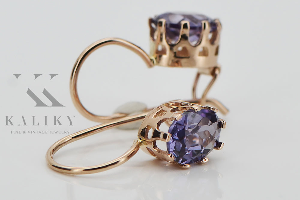Vintage rose pink 14k 585 gold alexandrite earrings vec196