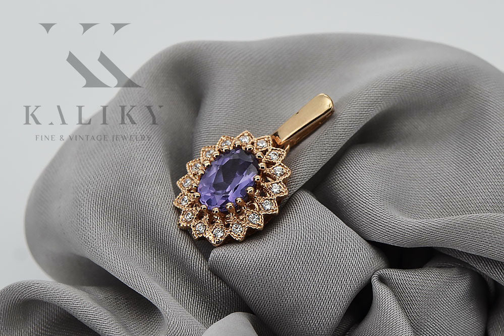 Vintage rose pink 14k 585 gold alexandrite pendant vpc018 Vintage vpc018r-ax